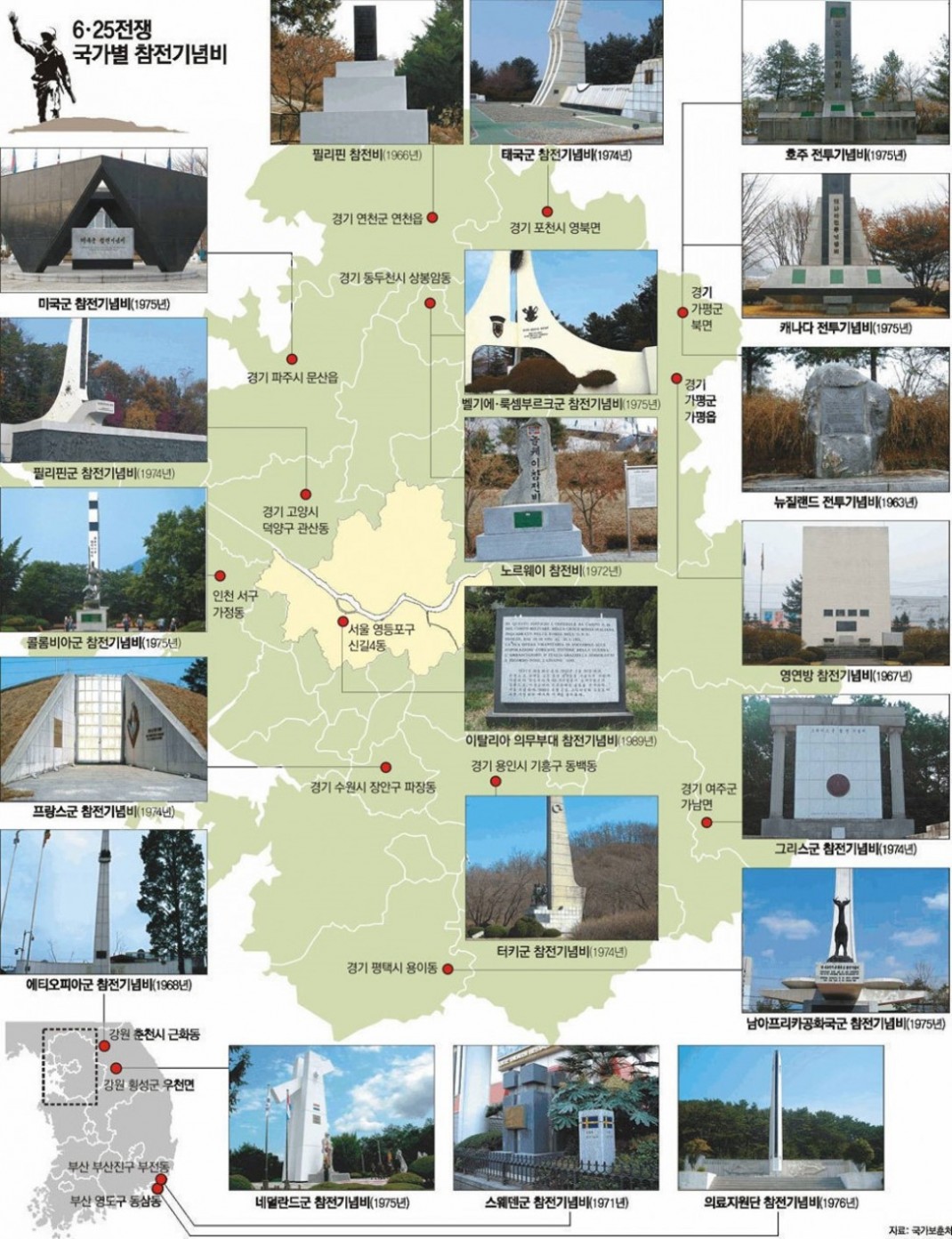 전국 각지의 한국전쟁 참전국의 참전기념비 현황