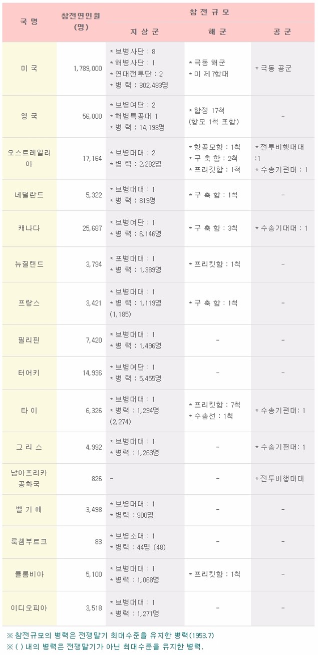 한국전쟁 전투부대 파견국가의 파견규모 > 자유게시판
